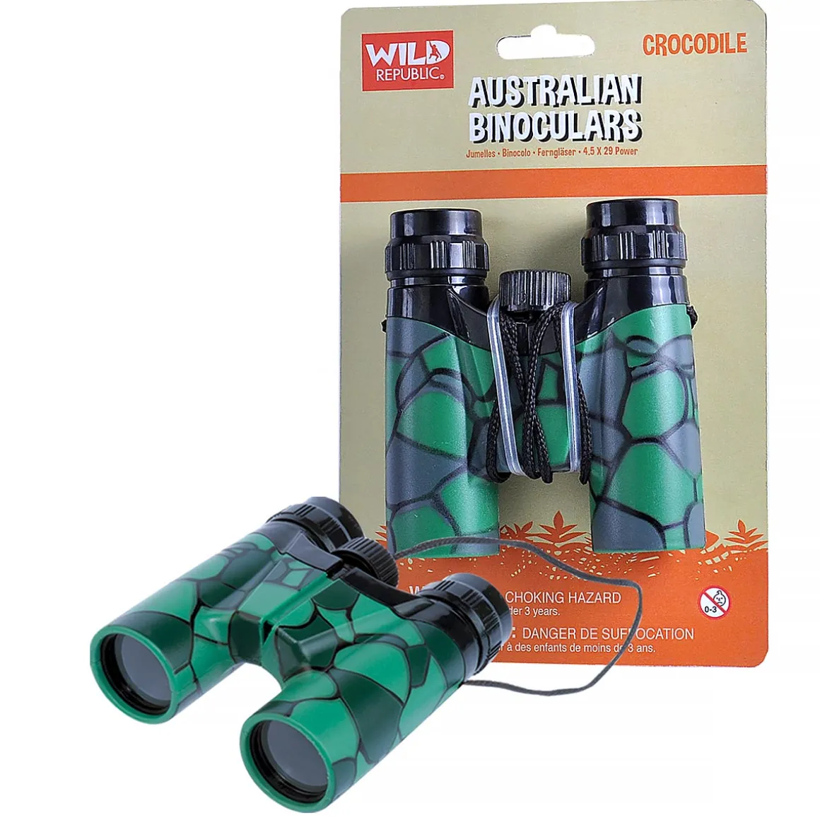 Explore nature with these cool Crocodile binoculars. Complete with crocodile print design. Have a look at the birds in the trees or the great scenery on a walk or pack them in the car for your adventures.