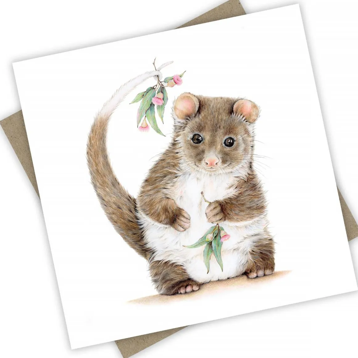 Meet Banjo the Ringtail Possum, as cuddly and fluffy as can be, illustrated in a palette of browns and soft creamy whites with a touch of light pint in the botanicals. Hand drawn with Prisma colour pencils and printed on beautiful eco Australian paper, 100% recycled carbon neutral.