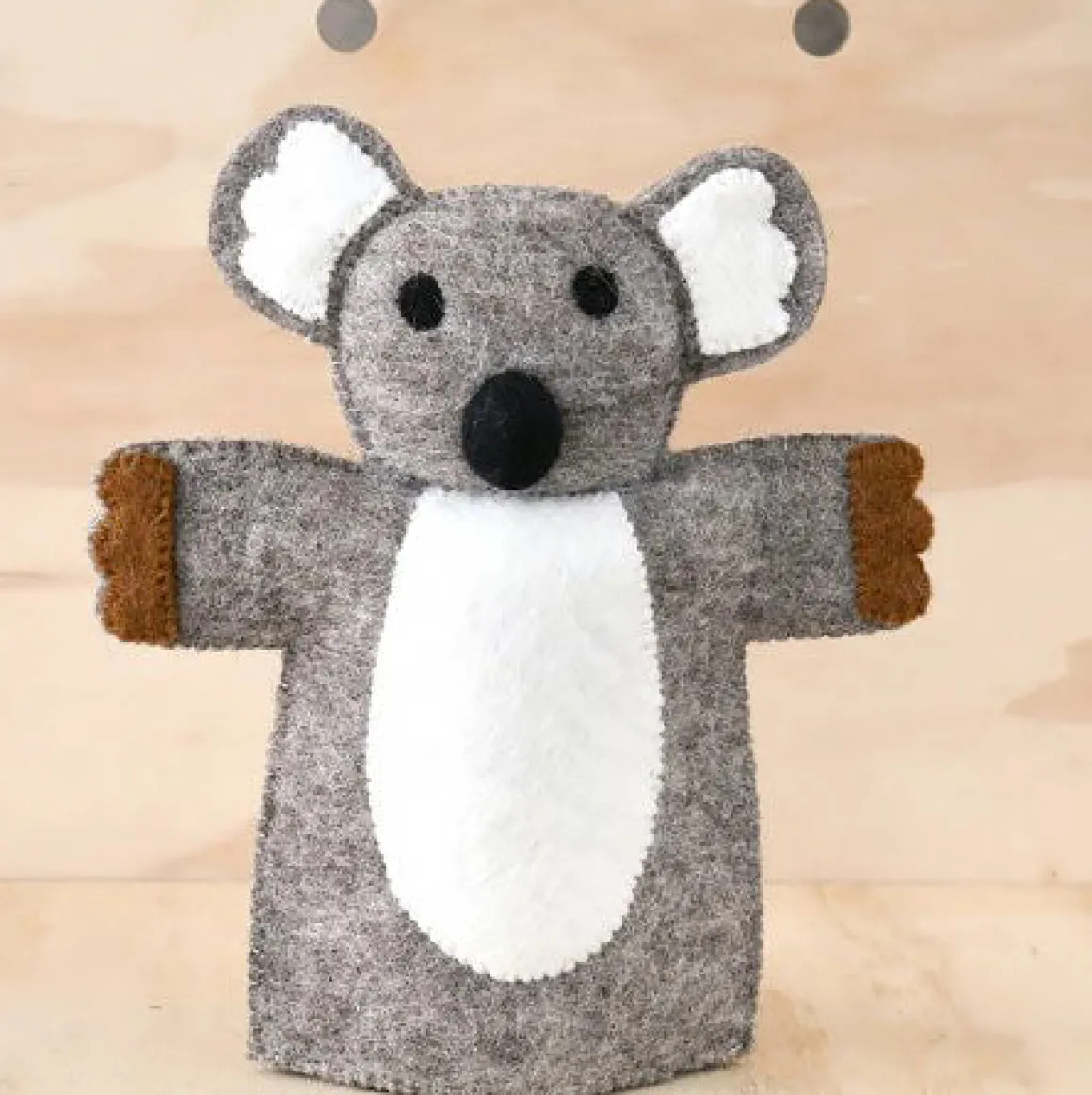 Handmade from 100% wool felt, this koala hand puppet is ideal for an interactive playtime with the kids.