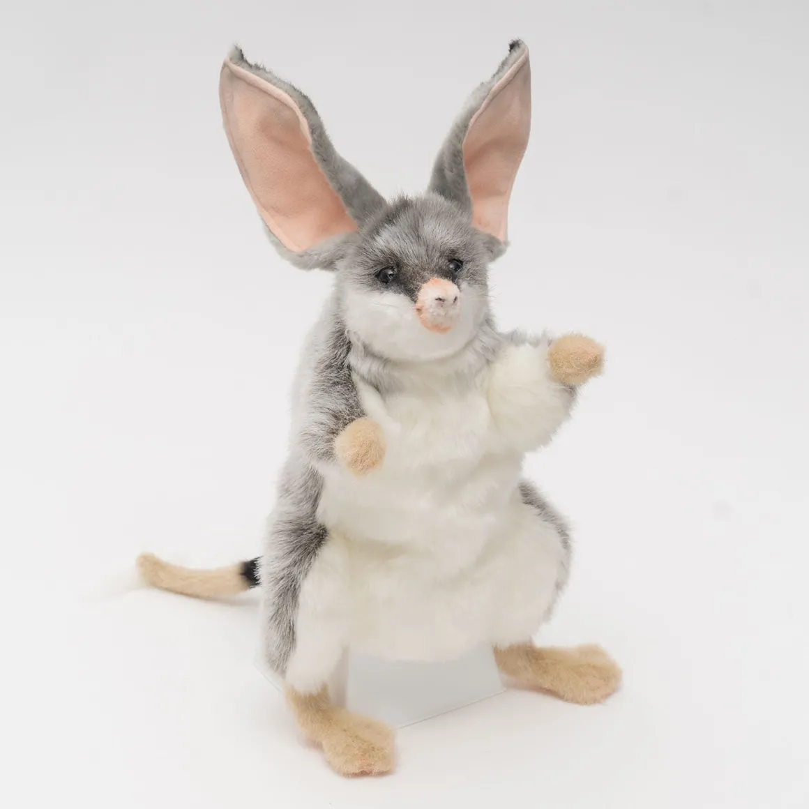 Hansa is renowned the world over for it’s true to life recreations of the worlds most loved animals. From the Australian collection, this delightful Bilby Puppet will snuggle into your little ones arms and light up their heart. Covered in super soft, fluffy faux fur and long fluffy ears our Bilby is ready for cuddles. Her fluffy grey fur has been hand trimmed to highlight her sparkling eyes. Designed with wildlife experts and brought to life with meticulous attention to detail our adorable Bilby Full Body Puppet is perfect for developing motor skills, hand-eye coordination, communication skills, self-confidence, and social-emotional connections.