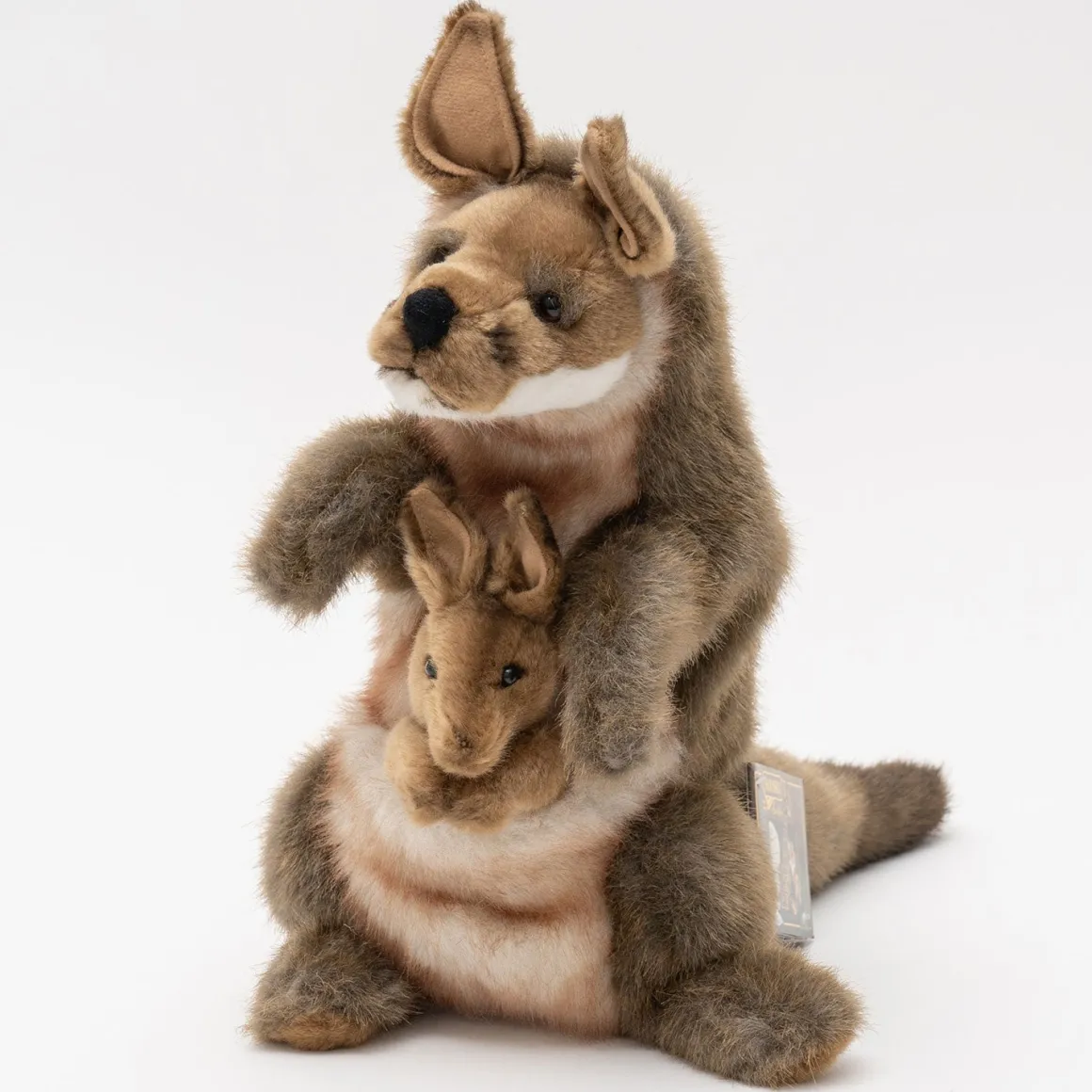Covered in super soft faux fur our adorable Kangaroo and Joey are ready for cuddles. Their golden fluffy fur has been hand trimmed to highlight their sparkling eyes. Brought to life with meticulous attention to detail our adorable Kangaroo and Joey Full Body Puppet is perfect for developing motor skills, hand-eye coordination, communication skills, self-confidence, and social-emotional connections.