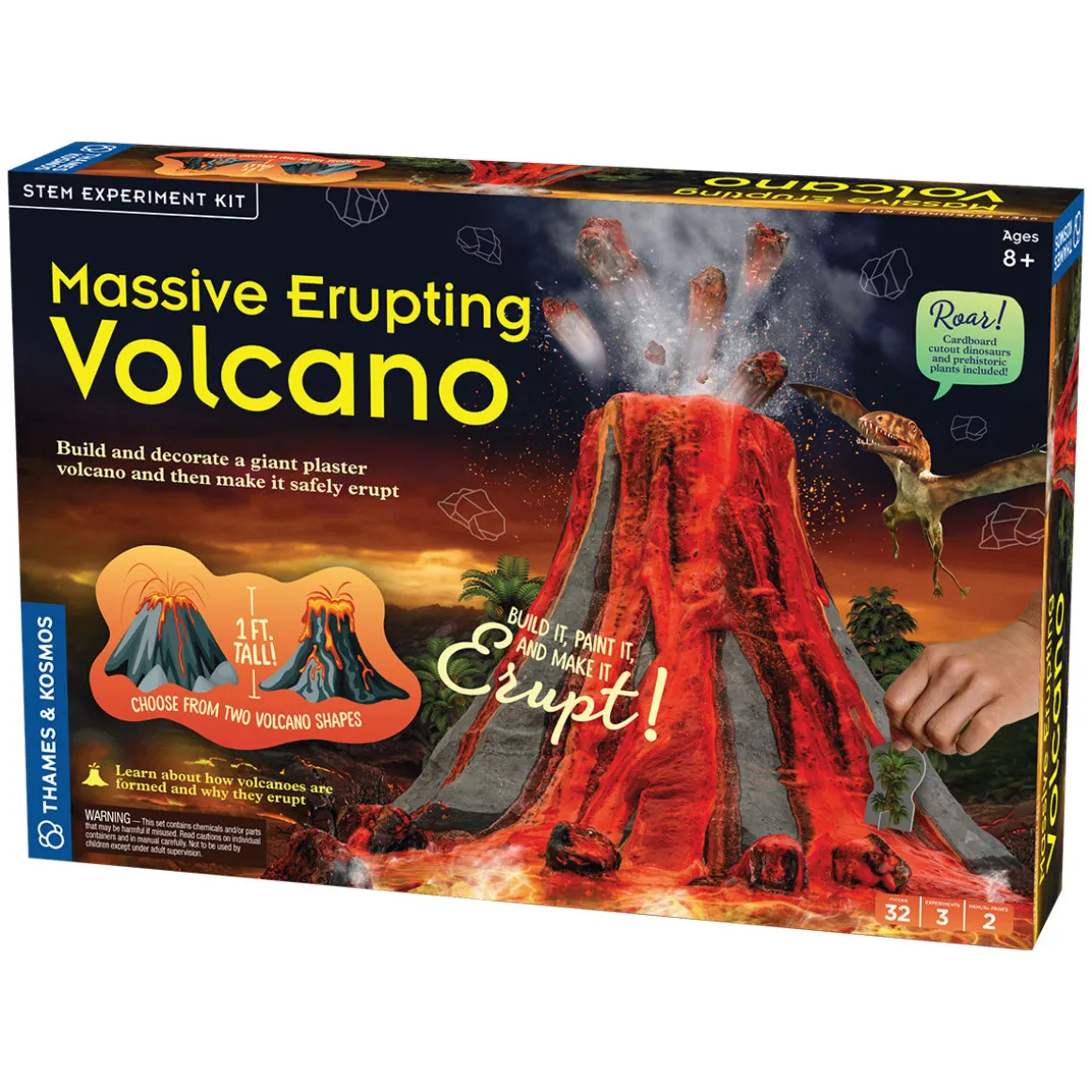 When you’re ready for action, simply mix the two non-hazardous powders, dye, and water to create a chemical reaction of flowing red ooze that simulates the molten hot lava flows of a real volcanic eruption. Six packets of chemicals are included, allowing the volcano to be erupted multiple times. The volcano frame enables you to choose between two volcano shapes. The final model is over one foot tall! A large, full-colour scientific poster of a volcano and an illustrated instruction sheet with lots of educational information about volcanoes is included. By studying these awe-inspiring and devastating natural phenomena, you can learn more about the inner workings of Earth, learn about the different types of volcanoes and what causes them, and explore volcanoes around the world and how they have affected life on Earth for eons.