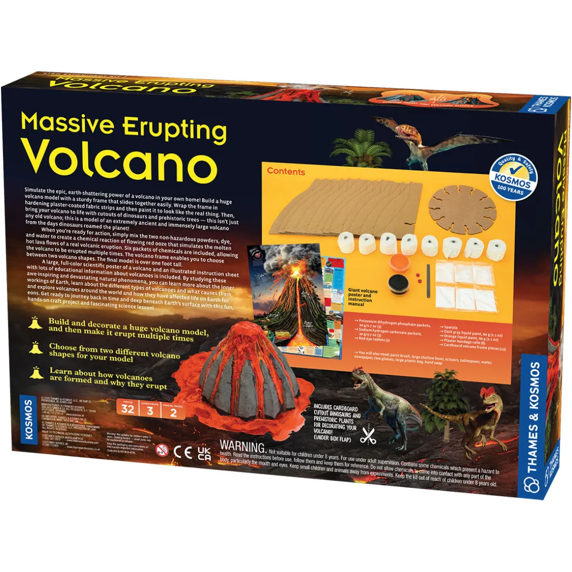 - Includes cardboard cut-out dinosaurs and prehistoric plants for decorating your volcano