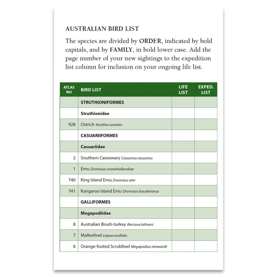 The Australian Geographic Birdwatcher’s Journal provides a practical, pocket-sized journal for all your bird observations. Within these pages you will be guided by an easy to follow template encouraging attention to detail of each bird’s appearance, behaviours and includes a comprehensive list of Australian bird species. Whether you are looking to start bird watching as a hobby, or are a true veteran of this past time, this practical pocket size journal with its ‘how to guide’, gear advice, and a link to bird clubs is all you need to take to the field for your next adventure!