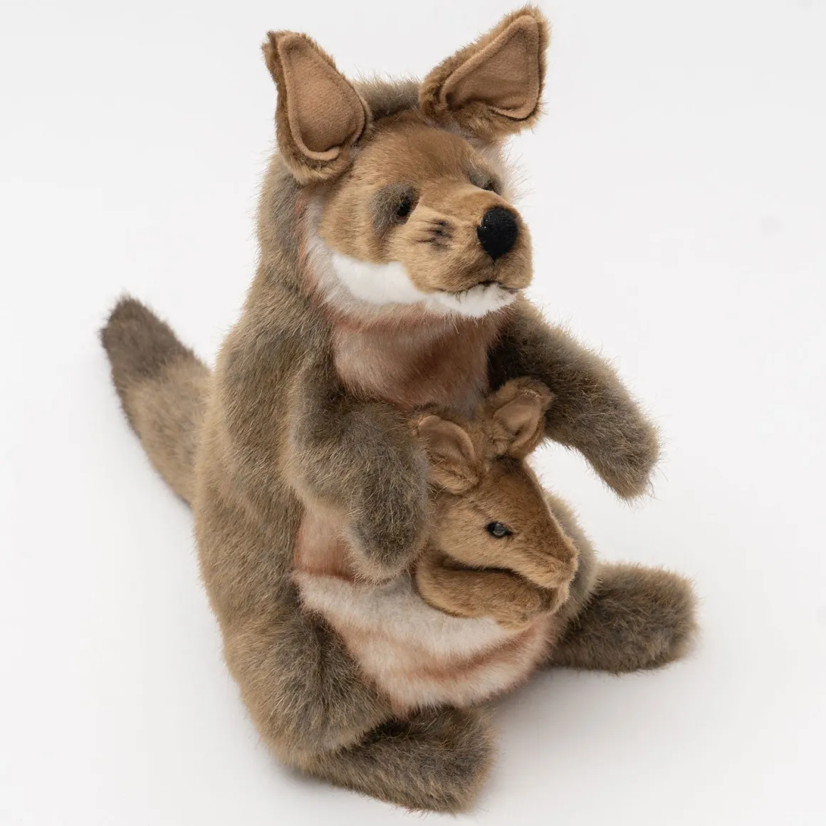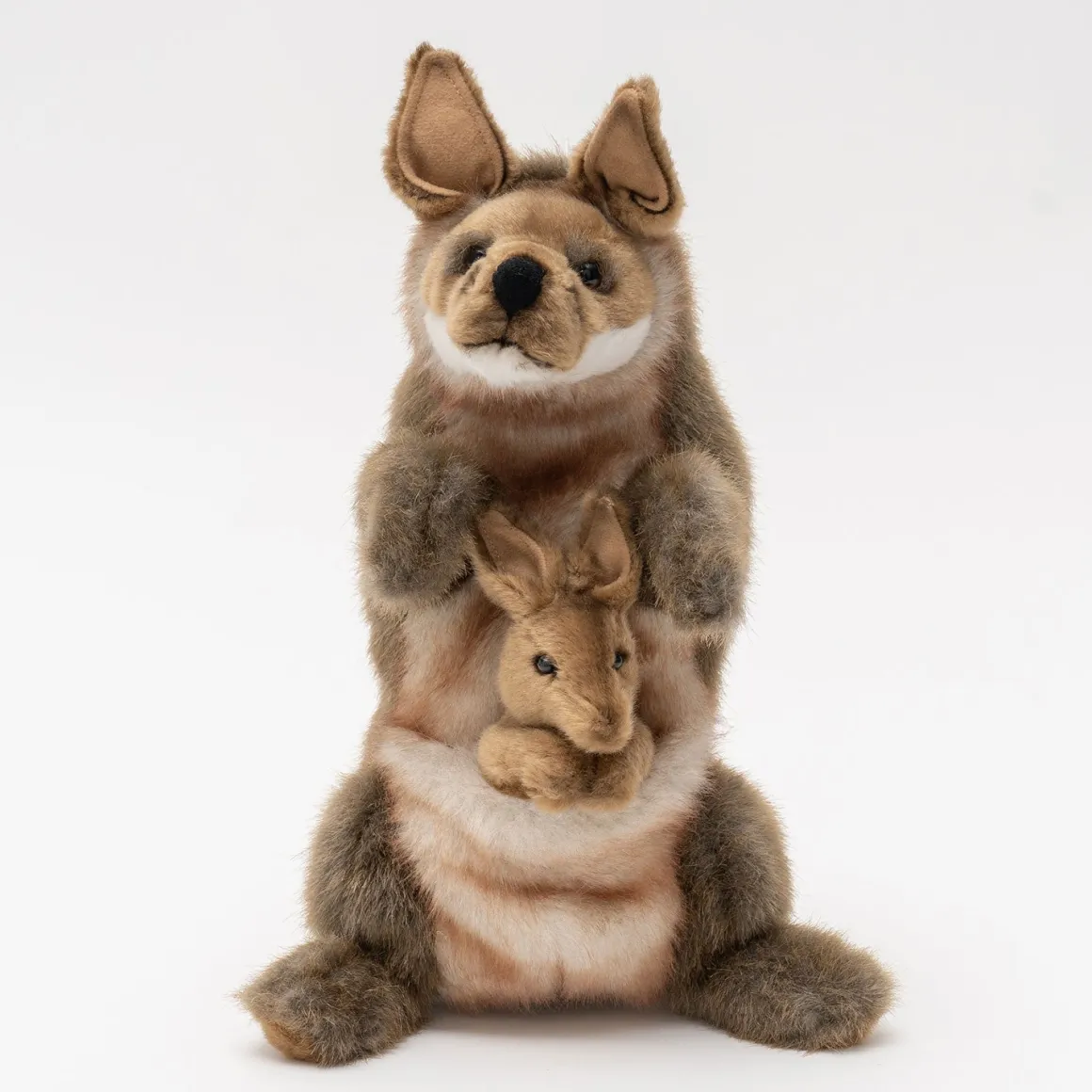 Covered in super soft faux fur our adorable Kangaroo and Joey are ready for cuddles. Their golden fluffy fur has been hand trimmed to highlight their sparkling eyes. Brought to life with meticulous attention to detail our adorable Kangaroo and Joey Full Body Puppet is perfect for developing motor skills, hand-eye coordination, communication skills, self-confidence, and social-emotional connections.