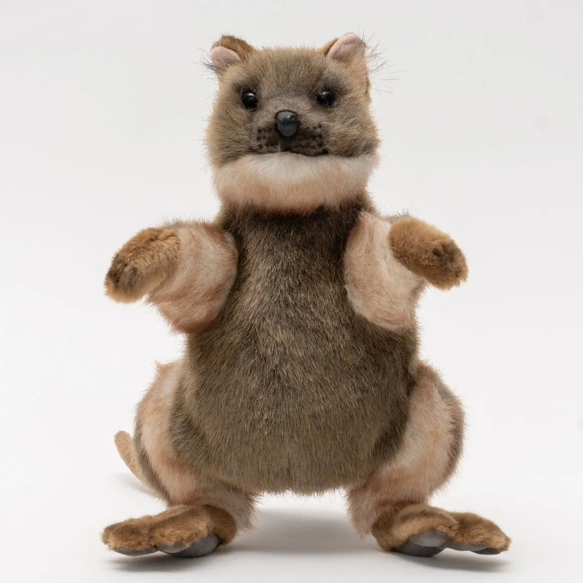 A wide mix of high-quality fabrics have been seamlessly blended to perfectly capture each of the Quokka’s iconic features. The adorable ears have been highlighted with textured fabrics and fine airbrushing. The two tone, super soft fabric on the belly of the Quokka features highlights that capture the light and are seamlessly blended with airbrushing. This full length hand puppet even includes the quokkas famous little tubby tummy! The immeasurable care put into creating this life like Quokka is only a fraction of the love it is bound to receive from its lucky owner. You can even grab your own selfie!