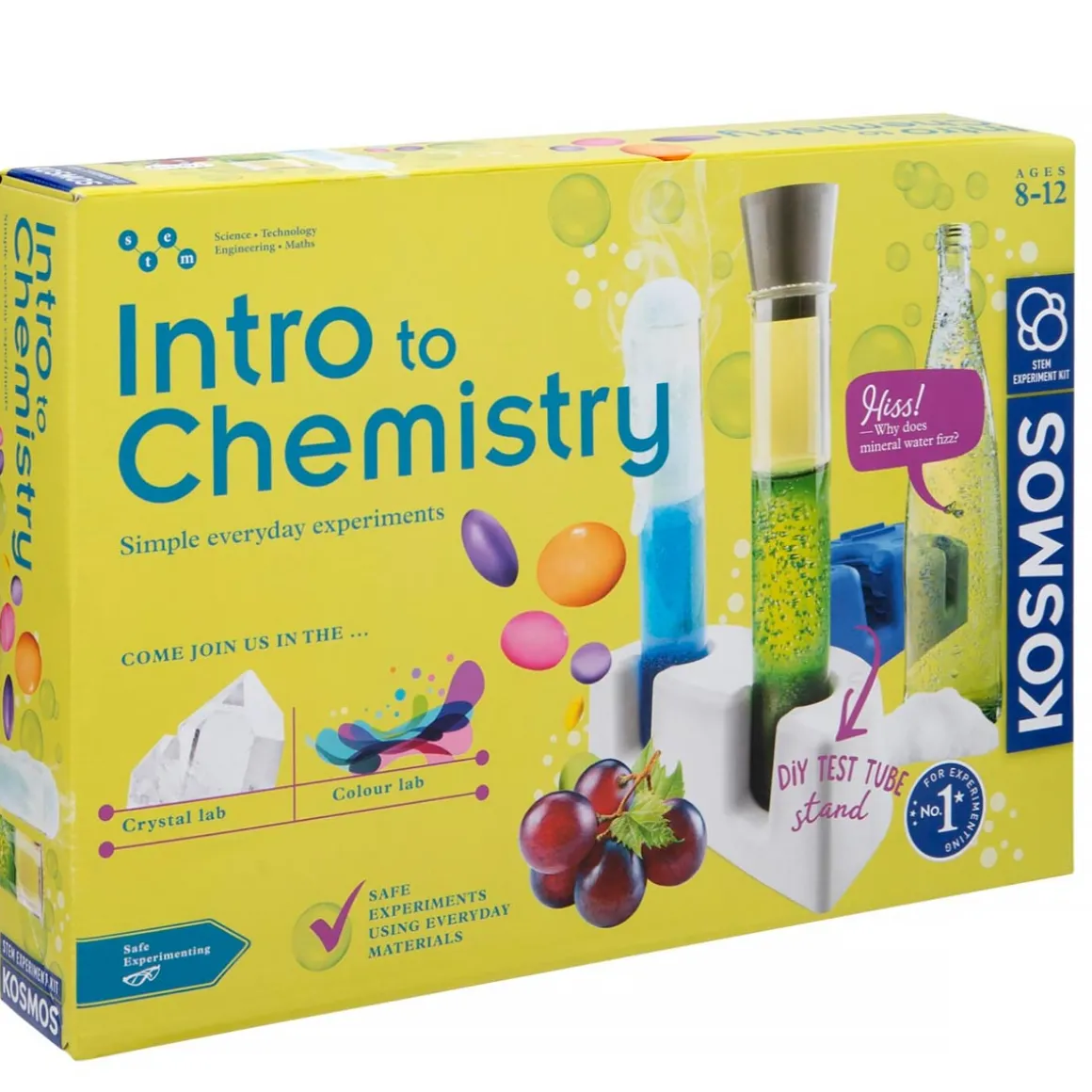 Intro To Chemistry Set kicks off a chain reaction of fun-filled experiments designed specifically for young kids. Junior chemists can safely explore simple chemistry using the tools in this kit and common household substances from the kitchen, bathroom, and laundry room.