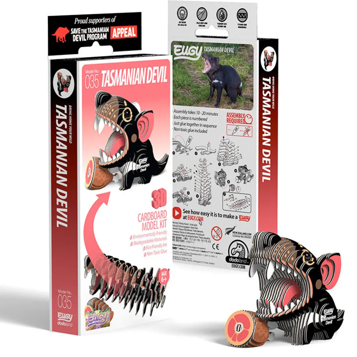 Currently, these species are endangered due to a transmittable virus. To help save the Tasmanian Devil, EUGY donate 10% of sales profit of this model within New Zealand, Australia and global online sales, to the Save the Tasmanian Devil Program. [Read More]
